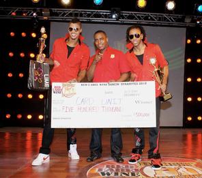 "Mi just feel happy, happy, happy!" said an ecstatic Damion 'Clubs' Smith of Card Unit, as he exited the stage after the group was declared the 2010 Red Label Wine Dancin' Dynamites winner on Sunday night at the Limelight Complex in Half-Way Tree. His partner Rory 'Spade' Brakenbridge was also excited as he described the moment as a dream come through. "Mi happy ya now, yuh zeet! Mi dream finally come through, is like mi wake up and right yah now mi out deh," he said backstage as friends and fans tossed both dancers in the air. Earlier that evening, high energy continuously surged throughout the audience - some seated while others stood - as suspense ripped through the venue and etched anxiety into the faces of the dancers as they awaited host Jenny Jenny to make their fate known. Before that, the stage was greased by the slick moves of the dancers as it was make-or-break night. The votes came in as the dancers projected their hearts and souls from the stage to the television screens in their final attempt to impress the viewers. In the first segment, Xcalade Dancers were in throwback gears dancing to MC Hammer's hit Can't Touch This. Card Unit was a 'royal flush' as they commanded attention, smoothly break-dancing to Chris Brown's Transformer. Target Dancers put in a great performance, dancing to Omarion's I Get It In, and Untouchable Squad was their usual dramatic and hilarious self as they once again did a dance off to a Justin Timberlake hit, trying to win over a mannequin they brought onstage. final showdown In the final showdown, Target Dancers faced Untouchable Squad and Card Unit faced Xcalade Dancers. At the end of the first round, judge Orville Hall went with Target Dancers as he said, "There is a spirit that you dancers dance with that comes from within". He told Untouchable Squad that only one dancer got his attention. For the second round, it was Xcalade who he said "rose to the occasion". Judge Kerry Ann Henry went with Target Dancers for the first round and Card Unit for the second, but not before informing Xcalade Dancers that, "I tip my hat to you but I have to give it to Card Unit". Adding a little spice to the evening were performances by 2009 Dancin' Dynamites winners Unlimited Dancers, Baby Tash, members of Shady Squad, To-Isis and Ding Dong and the Ravers Clavers. After Card Unit was declared the winner, the audience went wild, flocking the stage with arms outstretched wanting to congratulate the duo. Card Unit won $500,000 cash, a Sharp component set, Red Label wine, American Airline tickets for a four-day-three-night vacation at the Hilton in Washington DC and LIME Sony Ericsson W 200 cellphones, as well as computers to the winners' primary school. They will also take part in the 'Battle of the Five' finale at Mas Camp on May 23. Christopher Clarke of second-place winners, Target Dancers, said: "It's a happy feeling, but this is not the last ah Target, because I want the people to know that we have a lot to offer. We have our own productions, rhythm and dance that we are putting out." Tripplx X from Untouchable Squad which placed third, sought to advise dancers that if they decide to enter the competition next year, they must be prepared to dedicate all of their time to it. "You have to married the competition, because it is demanding, mi a tell yuh, but still mi haffi thank it because now mi fitness up deh now," he said Despite placing fourth, Xcalade Dancers were optimistic, as they still exuded a lot of energy backstage saying, "Jamaica look out fi wi next year, because wi coming back full force!" said dancer Carey Cunningham.